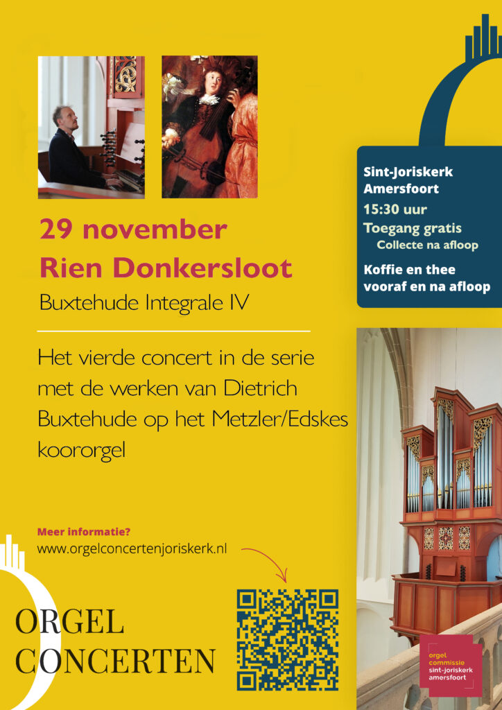Op zaterdagmiddag 29 november geeft Rien Donkersloot het vierde concert van zijn Buxtehude Integrale. In een reeks van ongeveer tien concerten speelt Rien alle orgelwerken van de Deens-Duitse componist Dieterich Buxtehude (1637-1707) op het Metzler-Edskes koororgel van de Sint-Joriskerk.
